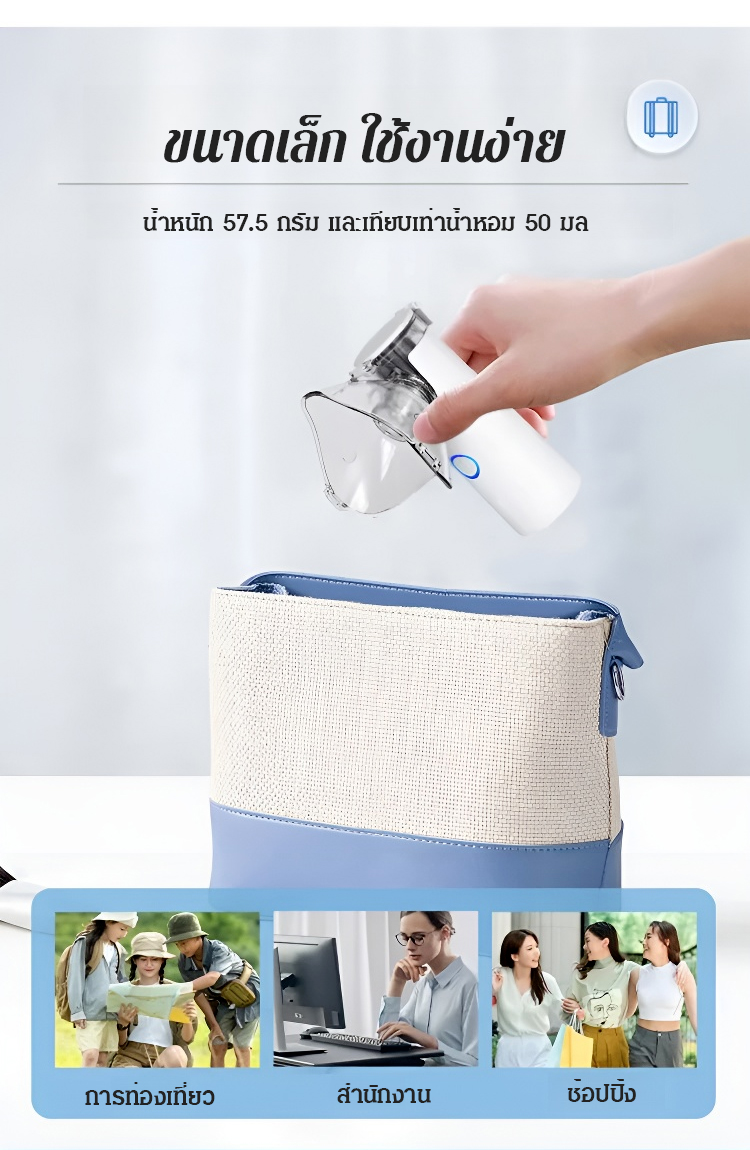 เครื่องพ่นละอองยาแบบพกพา - เทคโนโลยี Mesh ละอองละเอียดพิเศษ ทำงานเงียบ พกพาสะดวก (สำหรับผู้ใหญ่และเด็ก)