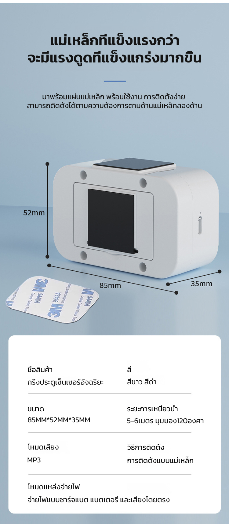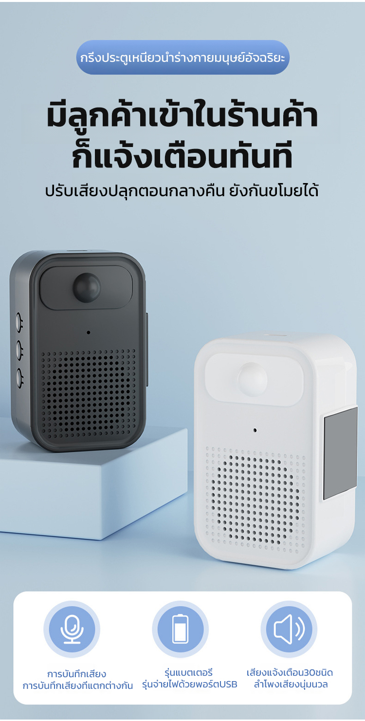 เครื่องแจ้งเตือนเสียงพูดอัจฉริยะ เซนเซอร์คนเดินผ่าน - บันทึกเสียงเองได้ ลำโพงดังชัดเจน ติดตั้งง่าย