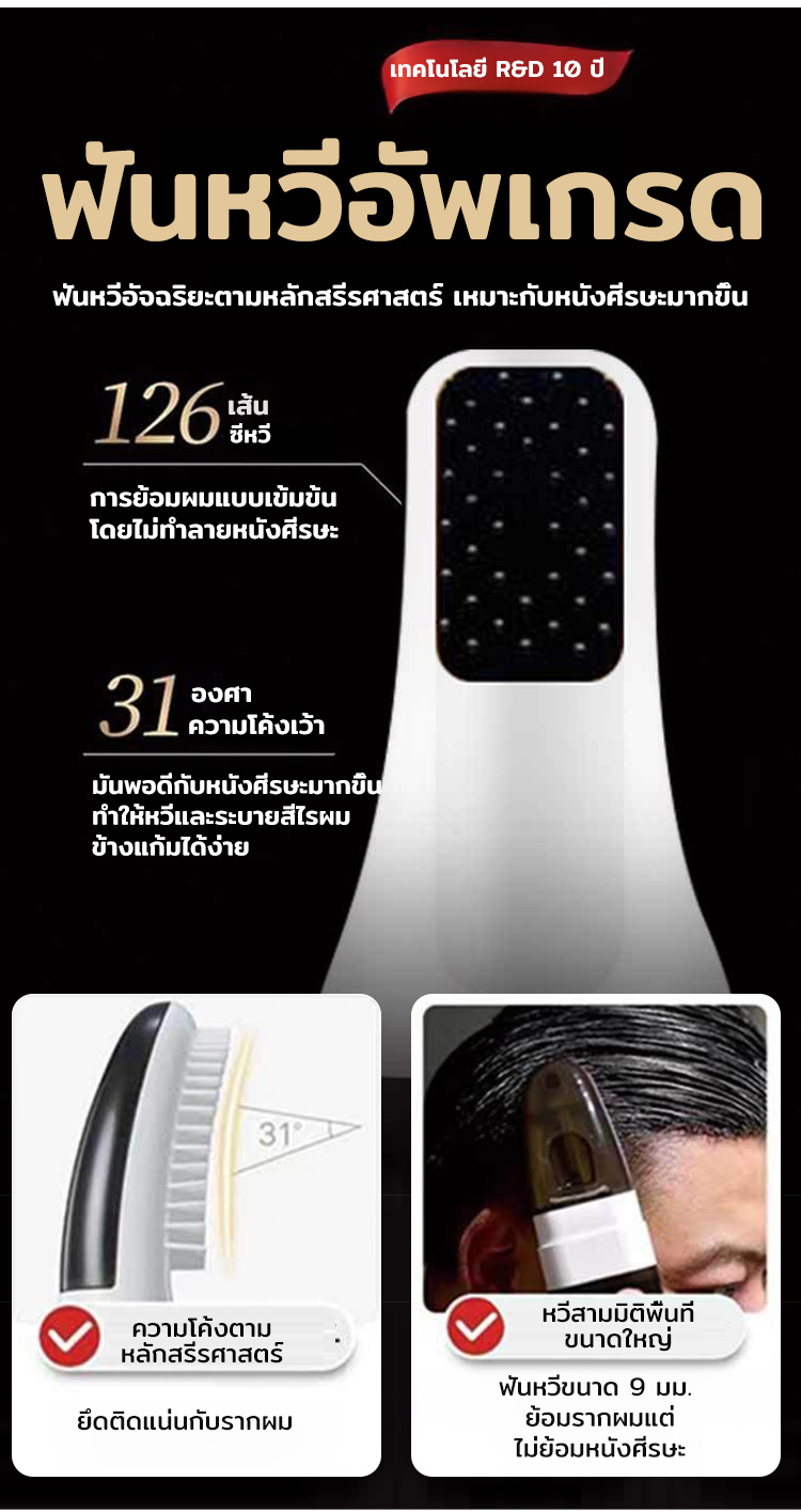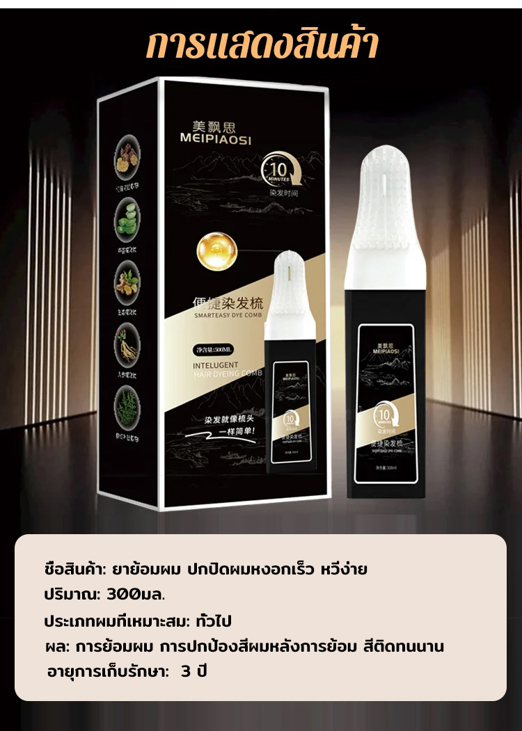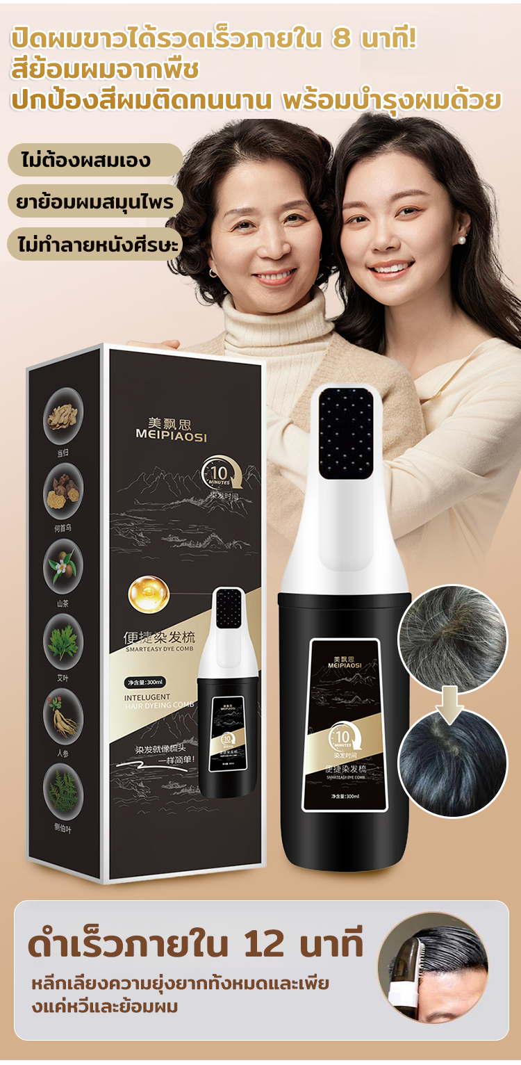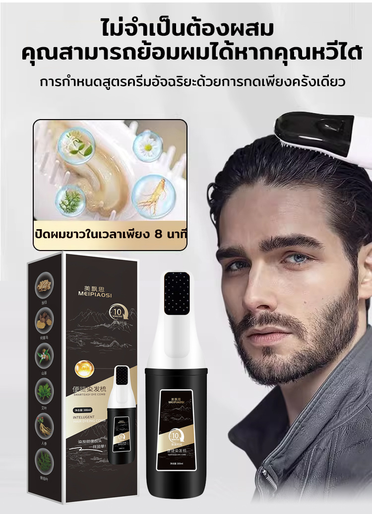 หวีเปลี่ยนสีผมอัจฉริยะ สูตรสมุนไพร | ย้อมผมง่ายด้วยมือเดียว ไม่แสบหนังศีรษะ ไร้กลิ่นแอมโมเนีย | ปิดผมขาวเนียนสนิท สีติดทนนาน ไม่เลอะเทอะ